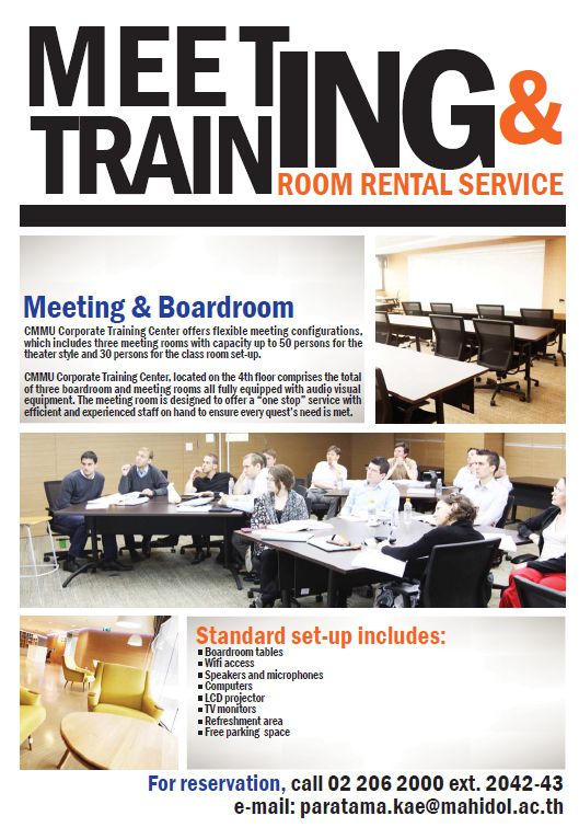 CMMU Corporate Training Center offers flexible meeting configurations, which includes three meeting rooms with capacity up to 50 persons for the theater style and 30 persons for the class room set-up.